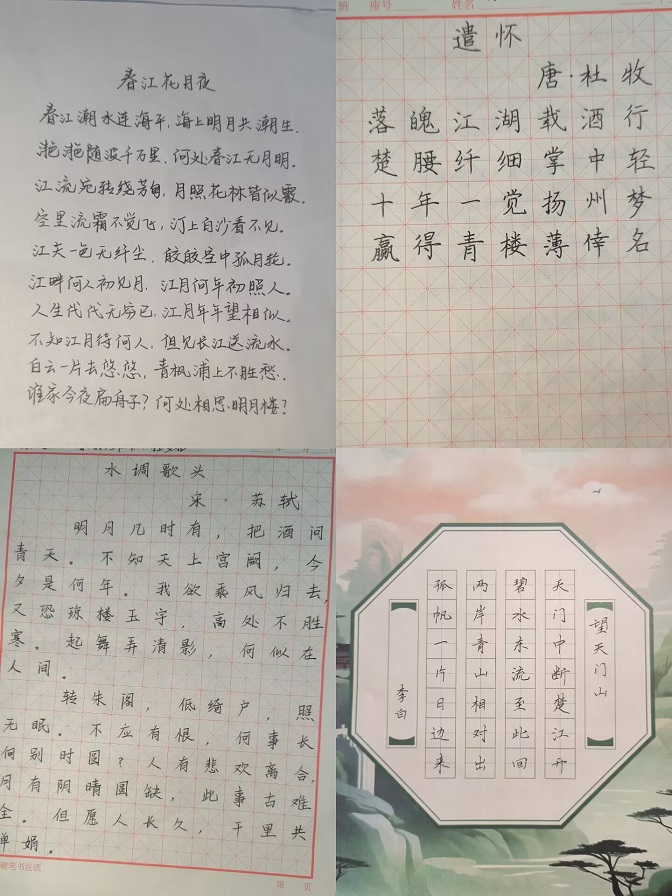 活动按计划有序推进,各环节彰显党建工作细致性与组织力:10月19日至20日为报名阶段,学生党员主动引导同学有序报名,带动全院参与热情;10月21日至25日进入作品比拼环节,参赛选手围绕经典诗词、青春励志名言警句及红色文化主题内容,以软笔、硬笔两种形式创作。楷书工整端庄中透着少年沉稳,行书流畅洒脱里藏着青春朝气,作品既延续传统笔墨的雅致韵味,又融入当代青年对文化传承与红色精神弘扬的独特思考,实现传统文化与红色基因的同频共振。