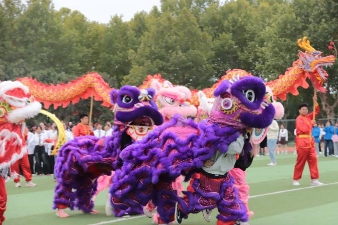 而开幕式上最引人注目的环节,莫过于气势恢宏的传统舞龙舞狮表演《龙腾盛世瑞狮呈祥》。由学院学生组成的龙狮队,在铿锵有力的锣鼓声中奔腾入场,瞬间点燃了全场热情。只见长龙随着鼓点时而翻腾飞跃,时而盘旋游走,舞狮表演则活泼灵动,憨态可掬,赢得了现场师生的阵阵喝彩,彻底点燃了全场的激情。